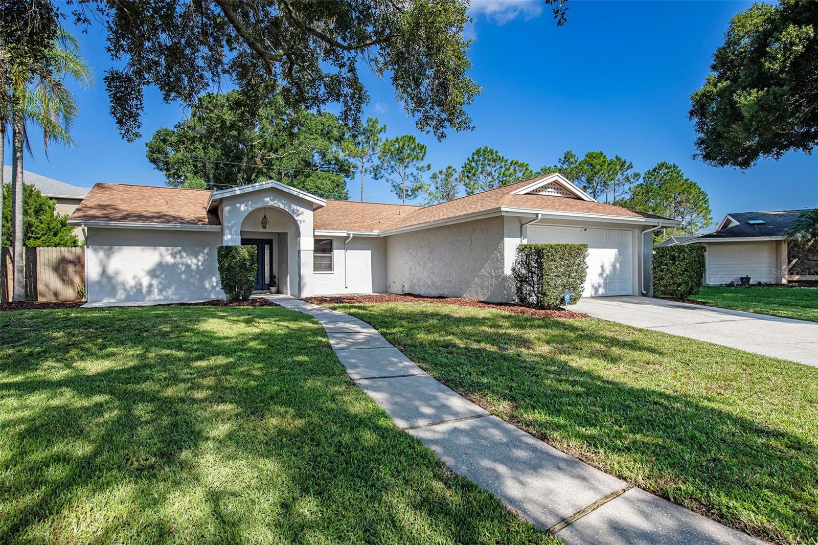 Welcome home! This exquisite 3 bedroom, 2 bathroom cul-de-sac home is located in the quiet community of Country Place. A beautiful ARCHED ENTRY will greet you and all your guests upon arrival. The current homeowner took a lot of pride to prepare the home for its next owner. First, you'll appreciate the new exterior paint (July 2023) and fresh mulching (July 2023). The ROOF has been replaced (10/2021), along with the A/C (10/2021), and luxury vinyl plank has been installed. The big ticket items have been taken care of! LAYOUT: This home has two living rooms! The first living room is open to the kitchen, has an inviting fireplace, and a slider that leads outside to a large patio and expansive back yard and storage shed. The second family room is open to the dining room. This functional open-concept floor plan has plenty of room to entertain and gather for the holidays. This home also has a split floor plan. Meaning, the primary bedroom is on the opposite side of the house from the secondary bedrooms. This feature offers significant in-home privacy. KITCHEN: The kitchen has Frigidaire stainless steel appliances, granite countertops, and classic white shaker cabinets that will never go out of style. TWO SLIDERS: The home has two beautiful sliders that allow for indoor/outdoor living! One is in the living room and the other is in the primary bedroom. Both sliders lead out to your expansive patio and backyard. You can have your morning coffee on the patio and practice yoga or pilates in the back yard. There's ample space on the patio and back yard to entertain and host large gatherings. COMMUNITY APPEAL: This community offers two beautiful parks and is close to major grocery stores and retail shopping such as Target, Publix, Wal-mart, and Sprouts. Convenience, convenience, convenience! Also, Citris Park Mall is close by and EOS gym is only five minutes away. The community has a very low HOA -only $150 ANNUALLY (not monthly). Click on the virtual tour links to see a walk-through of the home and the home's layout! The pictures don't do this home justice. Come see this house for yourself!