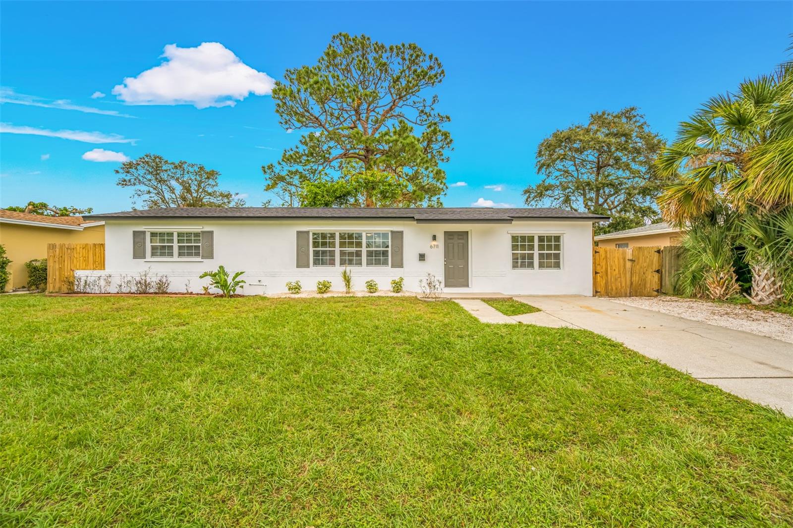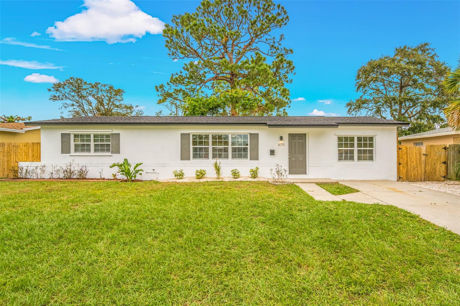 Welcome Home! Prime location in the Tyrone area, just minutes from shopping, restaurants, and the beaches as well as a quick drive to Tampa and the airport. No flood insurance is required as the house is in the 'X' flood zone. The home features an exceptionally modern floor plan and a custom-designed gourmet kitchen with views of the spacious living area. The kitchen features quartz countertops, stainless steel appliances, and wood cabinets with soft-close drawers. French doors lead to a covered lanai and a large fenced yard, perfect for entertaining. The owner's retreat features an oversized private bathroom with a double vanity and spacious walk-in shower. Move-in ready opportunity with a new roof installed in November 2024. This is a must-see property.